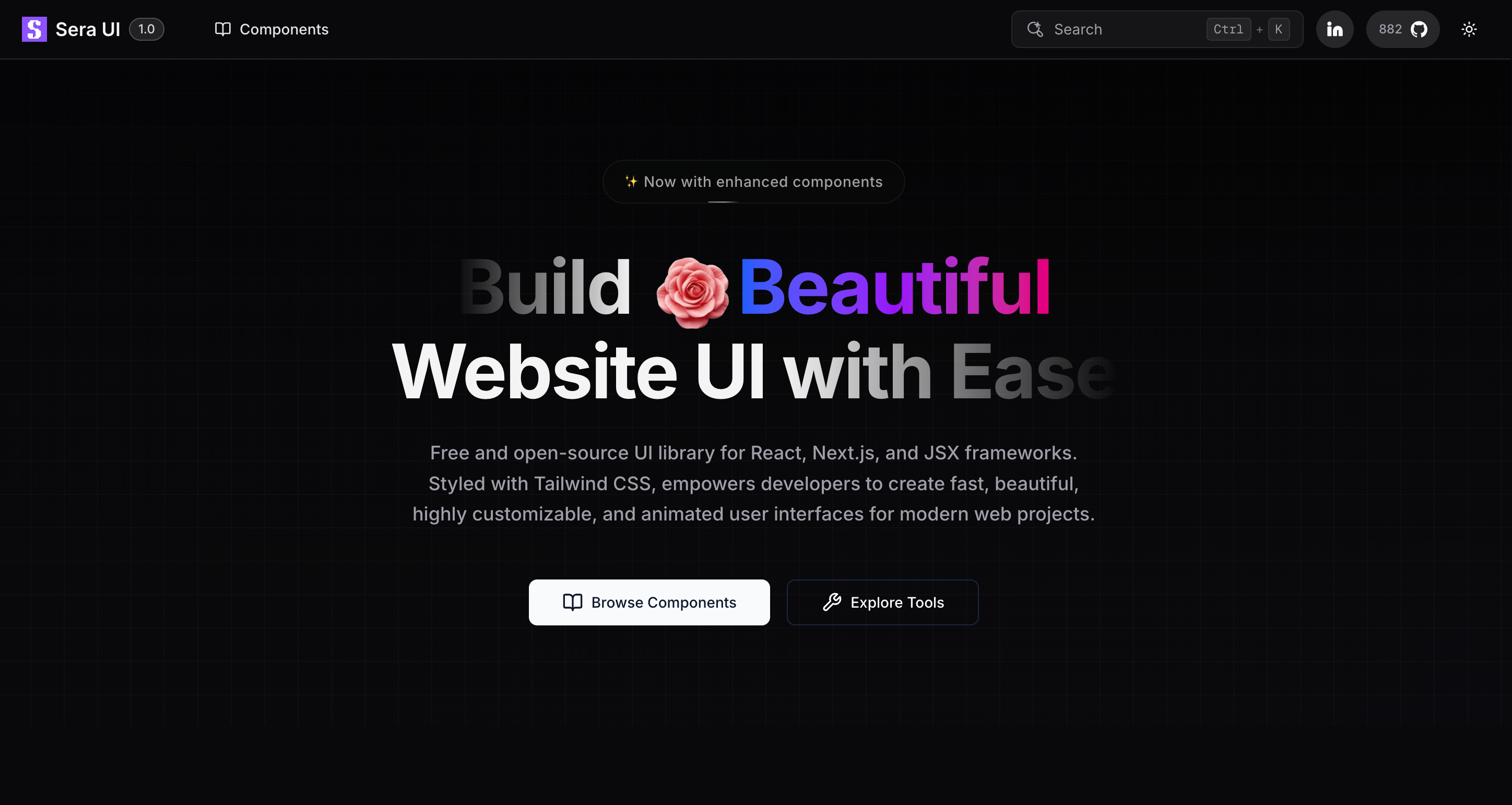 Versatile collection of pre-designed React and Next.js components based on JSX. From dynamic forms to interactive dashboards, Sera UI offers modular, reusable building blocks to accelerate your workflow and enhance project efficiency.
